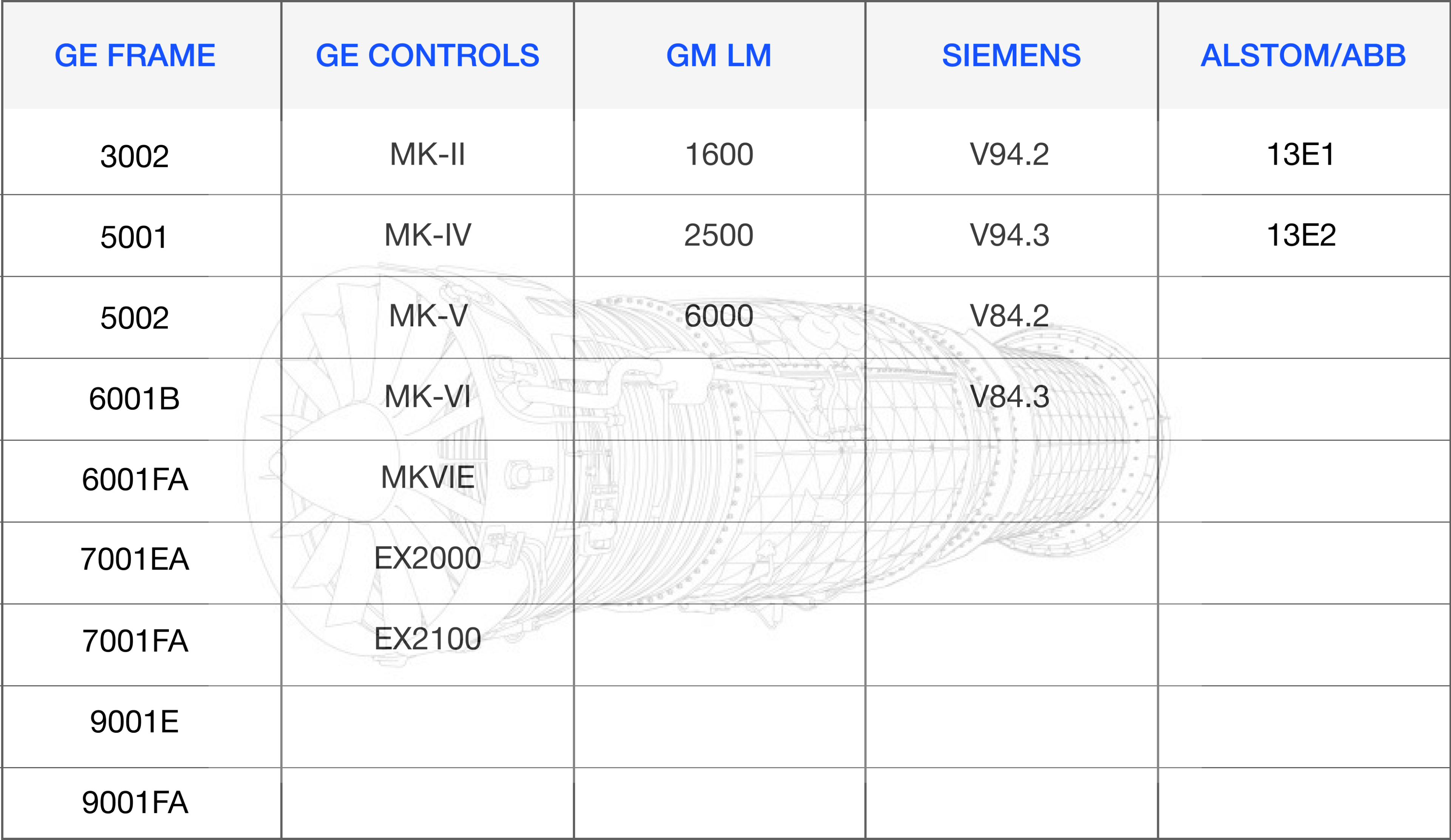 Gear Boxes and parts, Accessory Drives and parts, Bearing Seals, Oil Deflectors, Thrust Bearings, Bearing Housing, Load Couplings, Accessory Couplings, Servo Valves, Solenoid Valves, Control System Parts, Thermocouples, RDT’s, LVDT’s, Magnetic Pickup Sensors, Pressure Gauge, Supervisory Panels, Filters, Gaskets, Nuts,